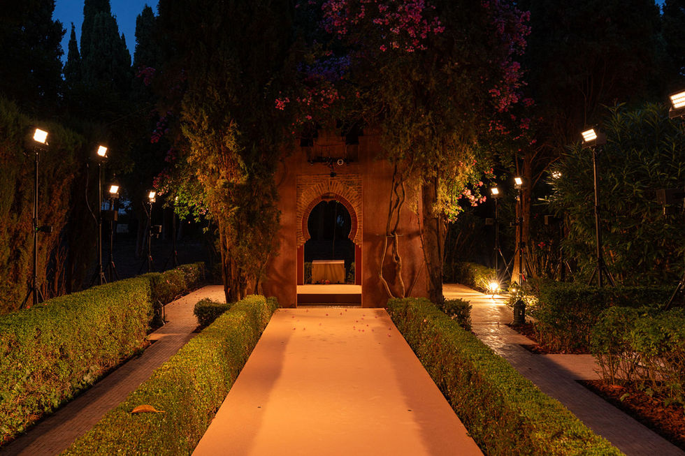 High Jewelry show set in an Andalousian decor of vegetation and fountains.